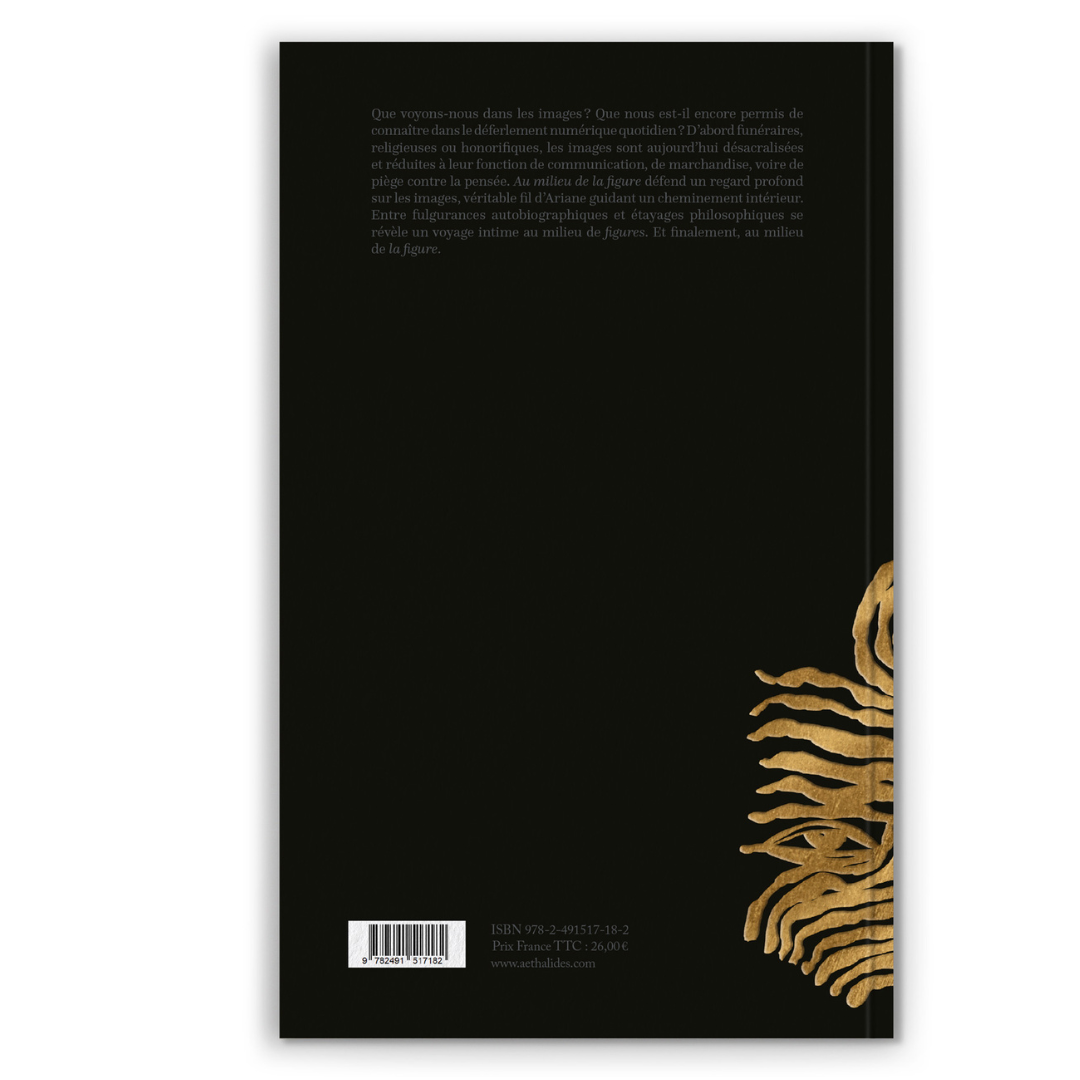 Format broché de Au milieu de la figure, essai littéraire de Lionel Fondeville, 1ère édition 07/11/23, Editions Æthalidès, Lyon, Collection « de sable plain ».