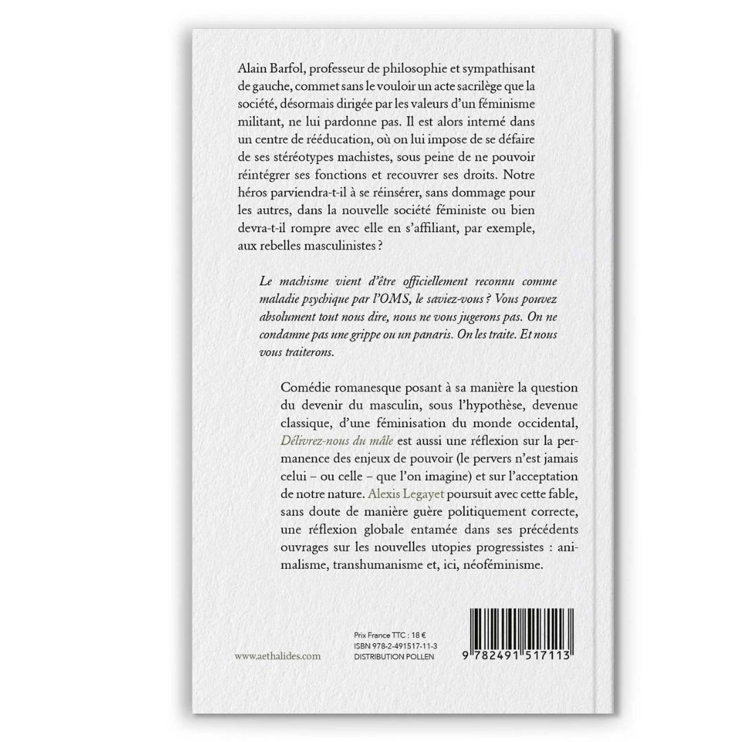 classique, d’une féminisation du monde occidental, Délivrez-nous du mâle est aussi une réflexion sur la permanence des enjeux de pouvoir (le pervers n’est jamais celui – ou celle – que l’on imagine) et sur l’acceptation de notre nature. Alexis Legayet poursuit avec cette fable, sans doute de manière guère politiquement correcte, une réflexion globale entamée dans ses précédents ouvrages sur les nouvelles utopies progressistes : animalisme, transhumanisme et, ici, néoféminisme.