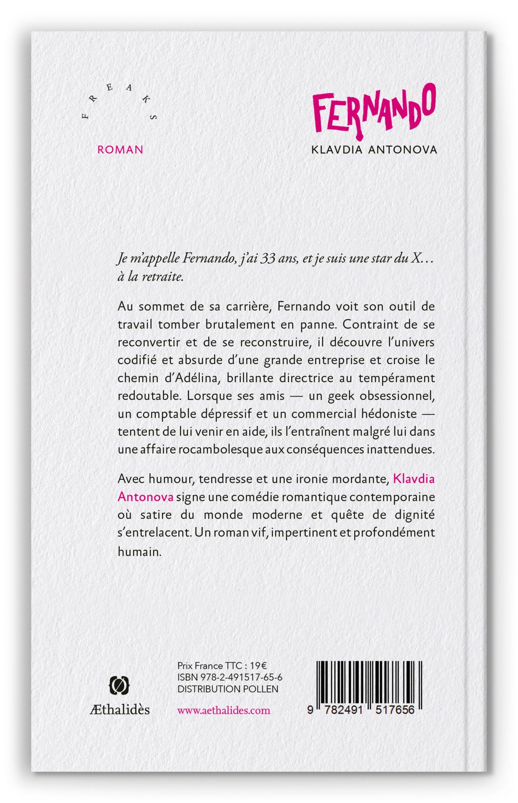 Edition brochée de Fernando, roman de Klavdia Antonova, éditions Æthalidès, Collection « Freaks ».