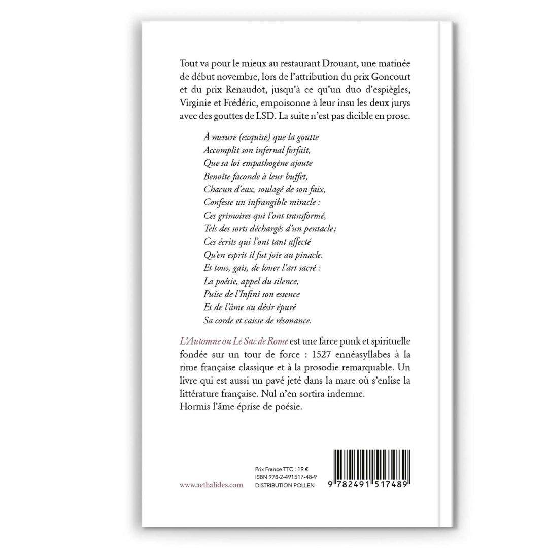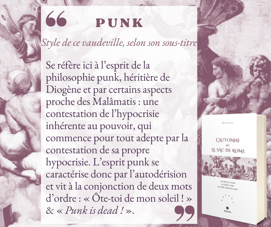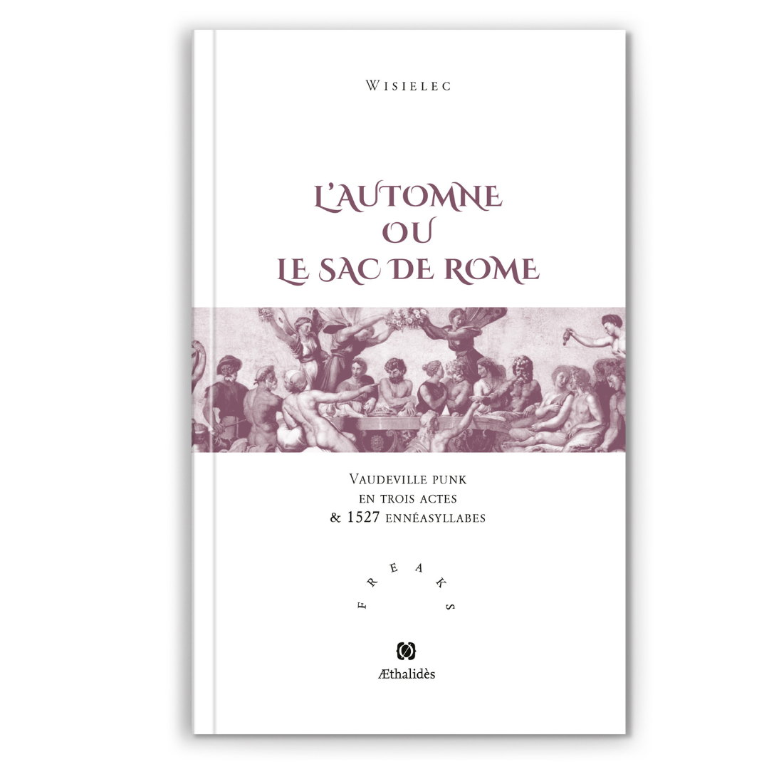 Edition brochée de L’Automne ou le Sac de Rome. Vaudeville punk en 3 actes & 1527 ennéasyllabes suivi de son glossaire, roman de Wisielec, Editions Æthalidès, Collection « Freaks ».